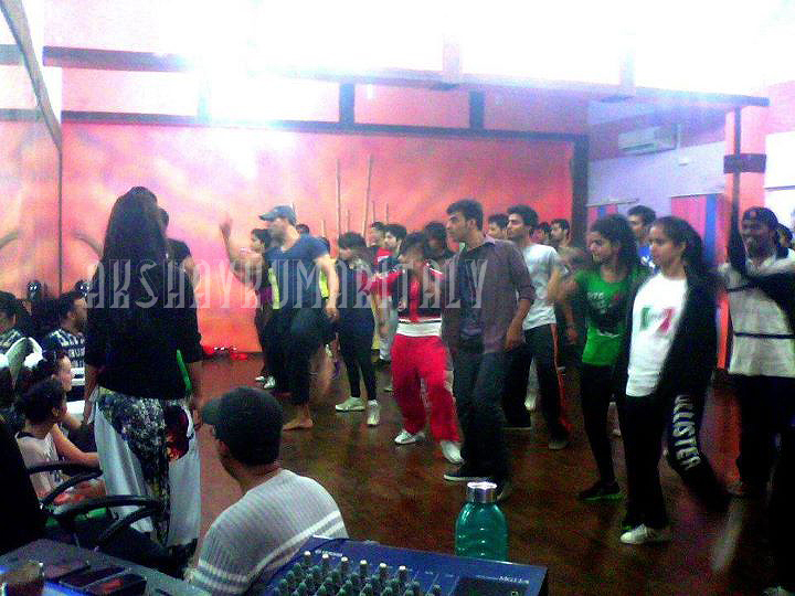Akshay Kumar e John Abraham fanno le prove per un evento promozionale